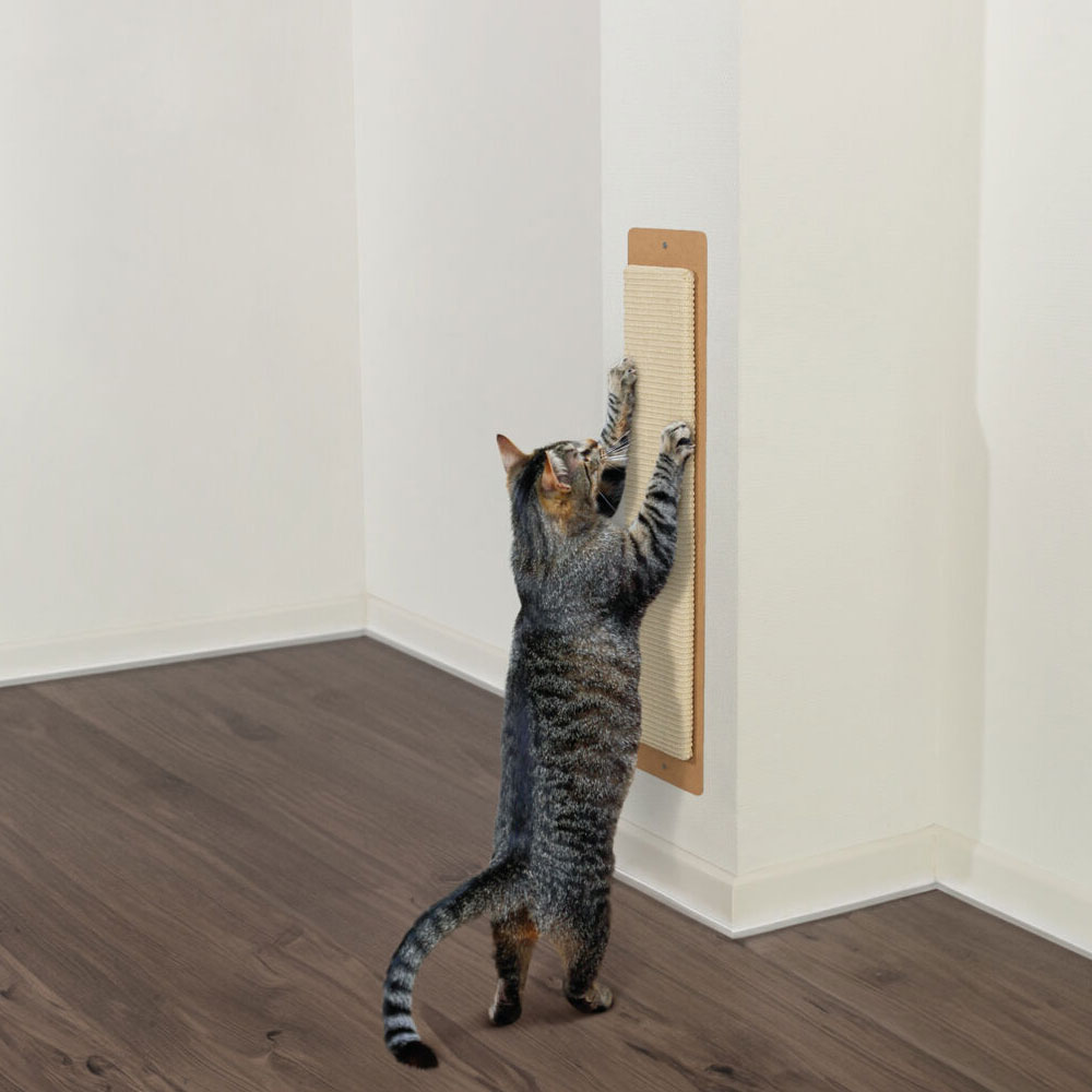 Dieses schlichte Sisalkratzbrett schützt Ihre Möbel und Wände vor den natürlichen Kratzgewohnheiten Ihrer Katze.