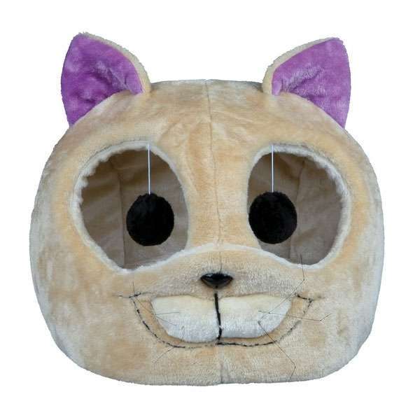 Im Inneren der Höhle befindet sich ein herausnehmbares Wendekissen mit einer beigen und einer fliederfarbenen Oberseite. Das Kissen ist mit Polyestervlies gefüllt. In den Augen, die als Ein- und Ausgänge dienen, befinden sich zwei Spielbälle an Gummibändern, die für Spielspaß sorgen. Die komplette Höhle kann bei 30°C per Handwäsche gereinigt werden.