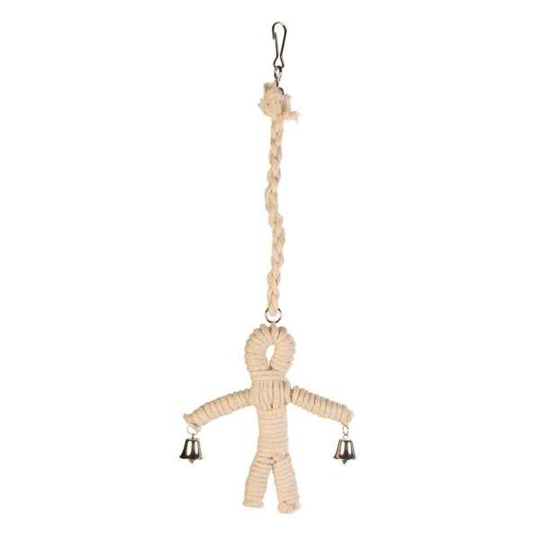 Das Männchen aus Sisal wird einfach im Käfiggitter eingehangen und dient der Beschäftigung Ihres Vogels. Er ist an einem Sisalseil mit Metallhaken befestigt und mit zwei Glöckchen ausgestattet.