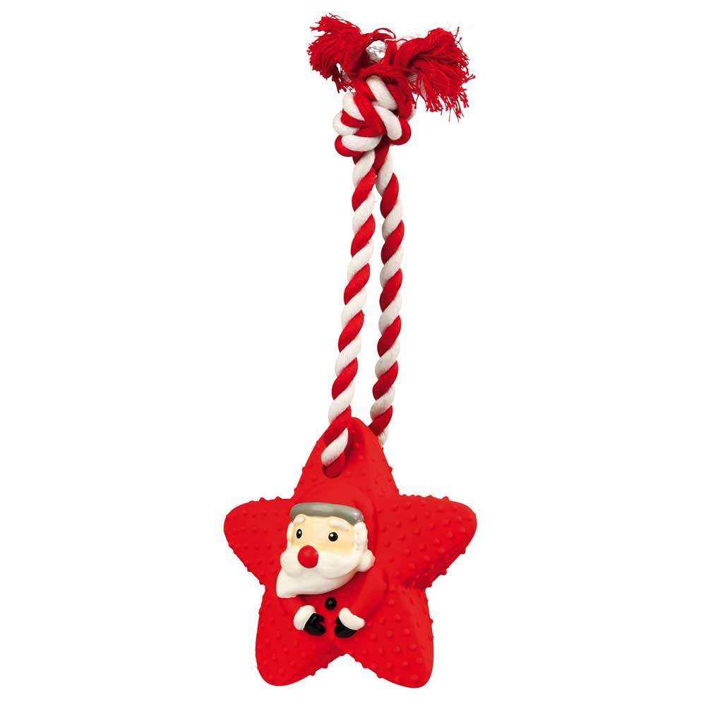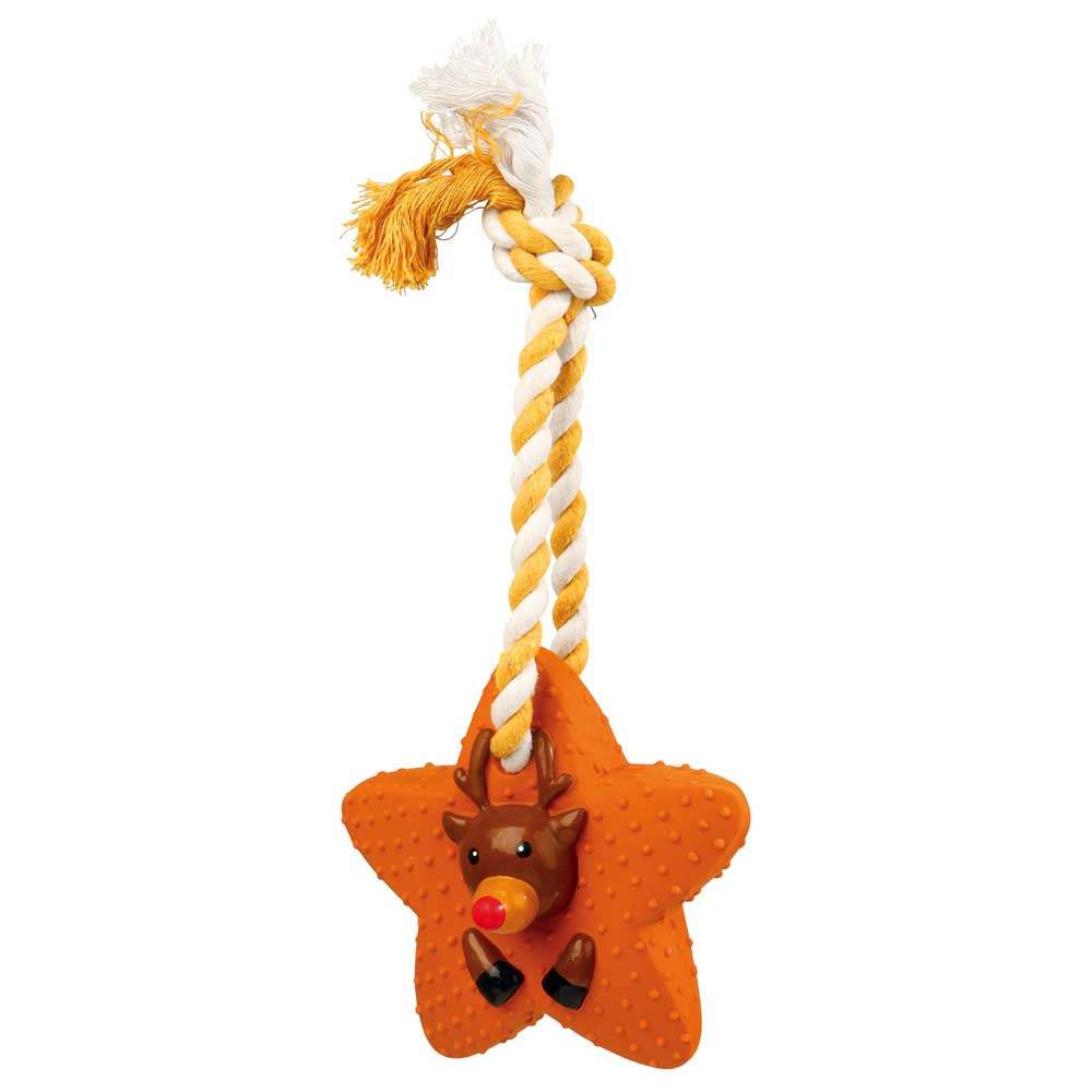 Das Xmas Hundespielzeug Stern am Tau versetzt mit seinem absolut niedlichen Design alle in weihnachtliche Vorfreude. Und zugleich wird Ihr Vierbeiner jede Menge Freude daran haben, mit dem Latexstern am Baumwolltau zu spielen. Der Stern ist mit Polyestervlies gefüllt und mit einer Stimme ausgestattet.