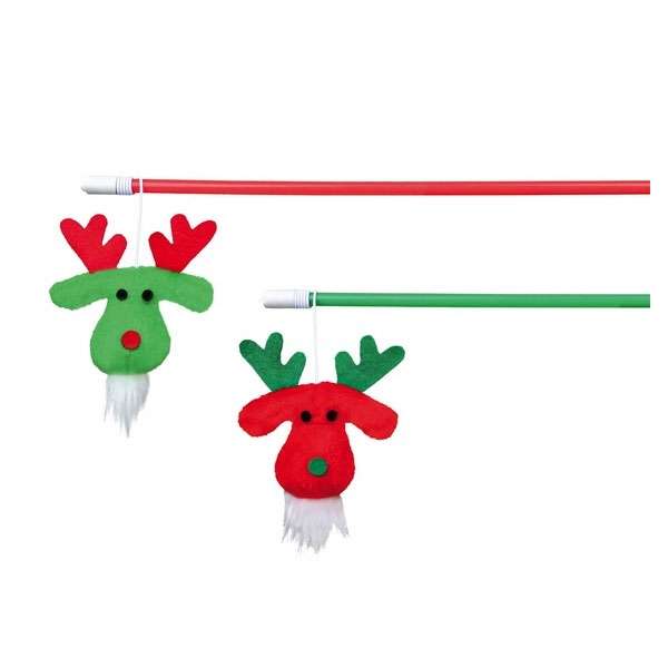 Katzen lieben Katzenangeln und die damit verbundene Interaktion mit ihrem Herrchen! Mit dieser Spielangel mit Rentier aus Plüsch und Filz machen Sie Ihrer Samtpfote zum Fest also eine ganz besonders große Freude. Das Rentier ist mit eingenähter Raschelfolie und mit Catnipduft bestückt.
