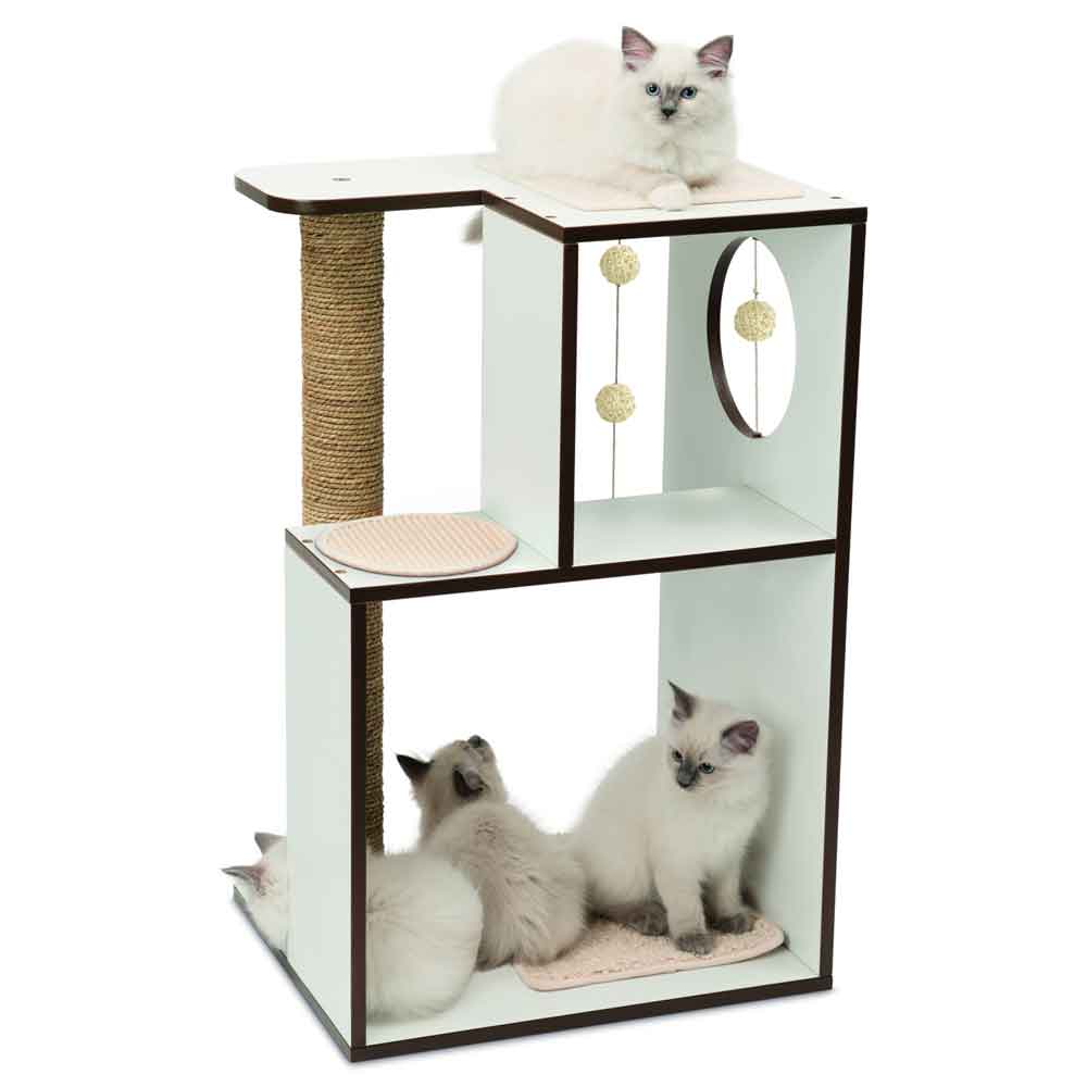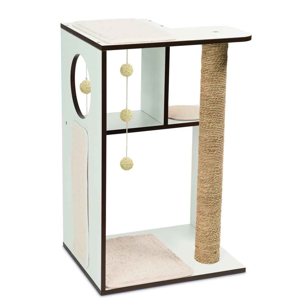Die V-Box Large ist eine kompakte Abenteuerwelt für Katzen. Mehrere Ebenen und Liegeflächen bieten Ihrer Katze Gelegenheit zum Relaxen und Spielen, während die lange Kratzsäule und –fläche zum genüsslichen Krallenwetzen einladen.